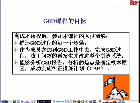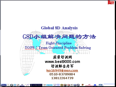 | 8D课程培训公开班 上海科租企业管理咨询有限公司 课程费用:人民币3280元(含税) 包括材料费、文具费、伙食费 有完整G8D资料光盘赠送 发G8D培训证书 证书在质量培训网学员证书查询 培训时间:2018年4月18日-19日 2018年8月1日-2日 2018年11月28日-29日 培训地点: 江苏无锡 公开课培训班和企业内训请垂询 E-mail: 923503608@qq.com (上海)13816949004 |